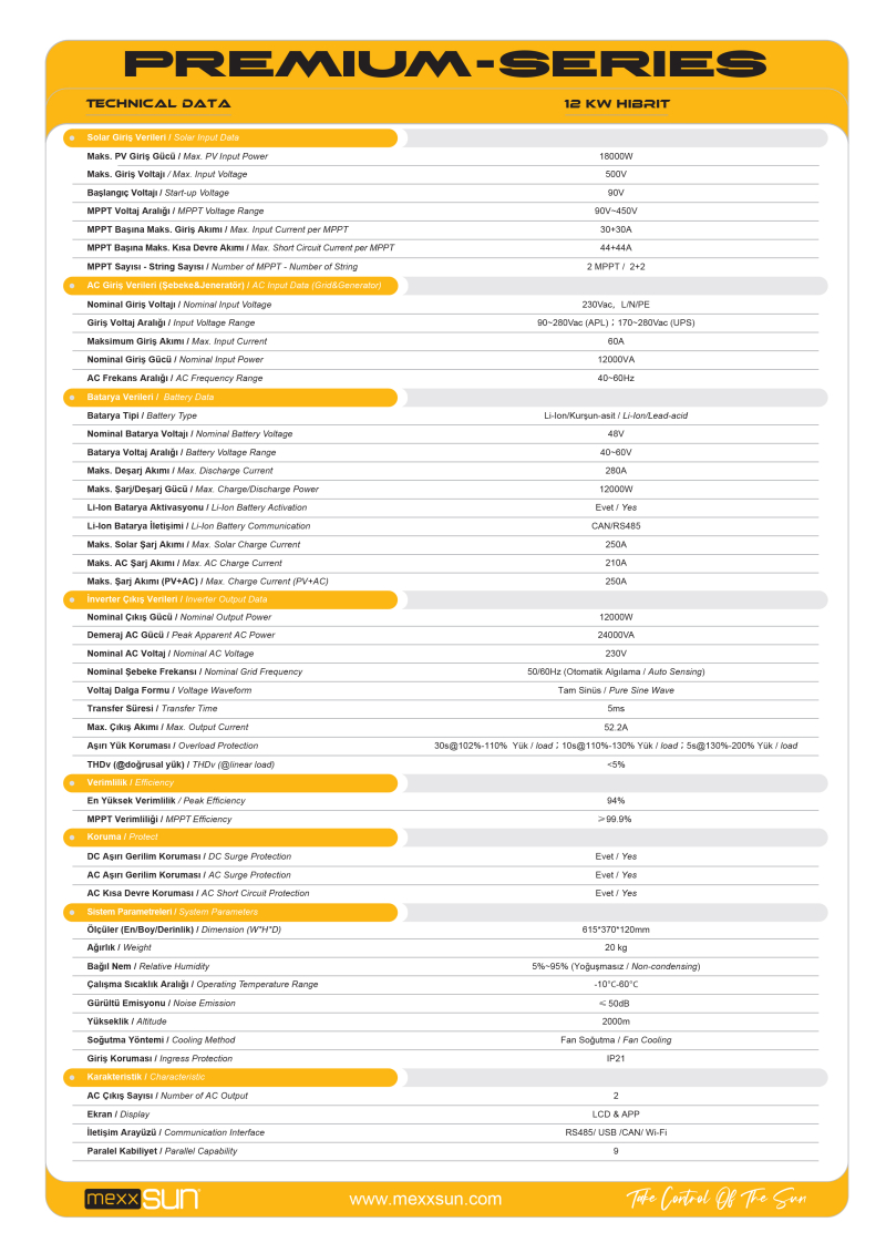 MEXX-P12kW - Premium 48V 12kW (Paralel /Wi-Fi/ Dual Output)