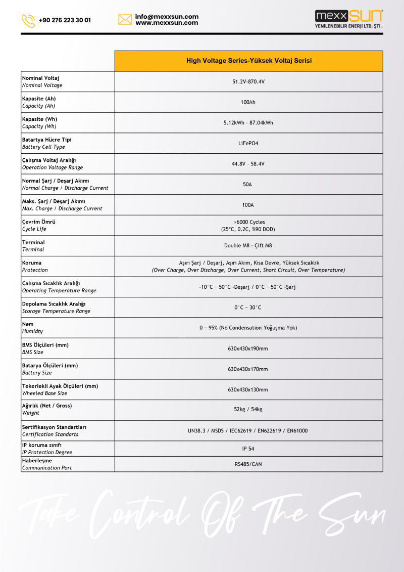 MEXXSUN Yüksek Voltaj Lityum Akü 40.96 kWh